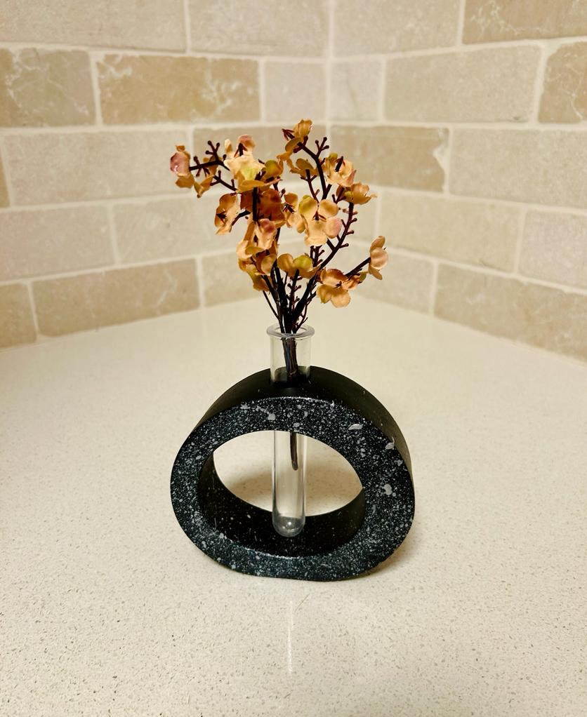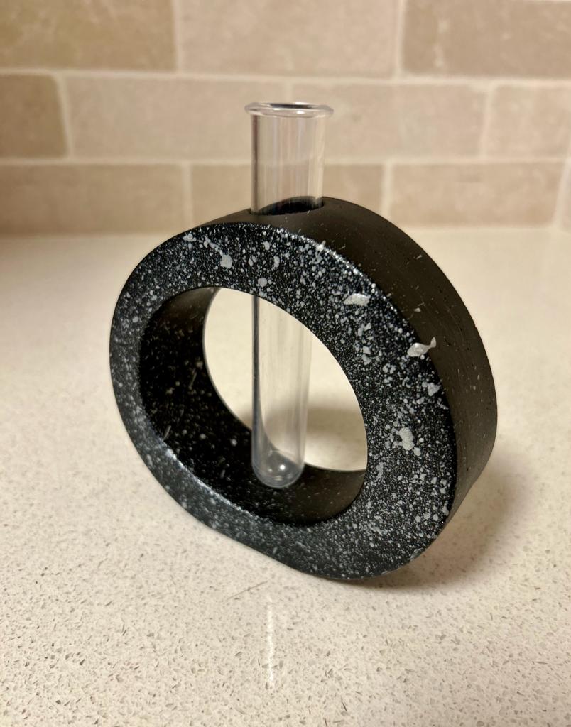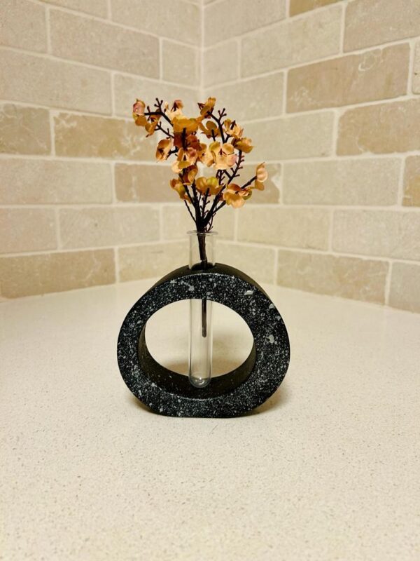 אגרטל חלול עגול מבטון – שחור/ שחור-כסף