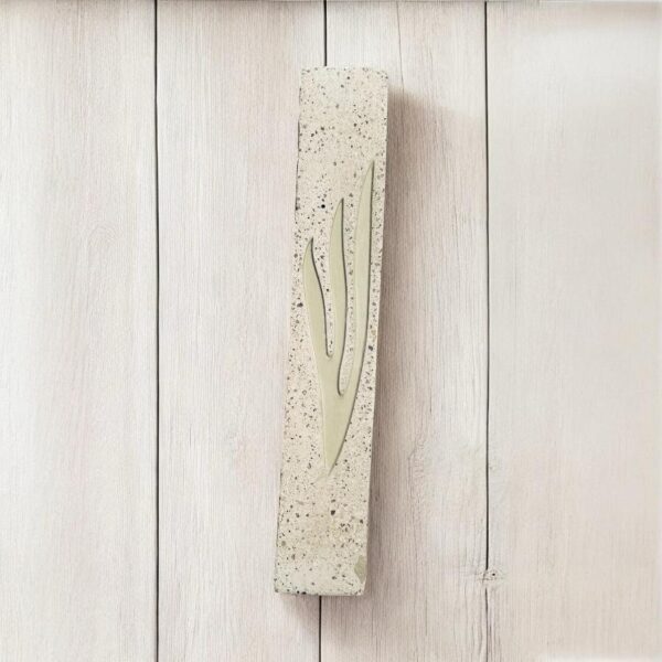 בית מזוזה ענק מבטון בצבע שמנת דמוי אבן עם ש' גדולה