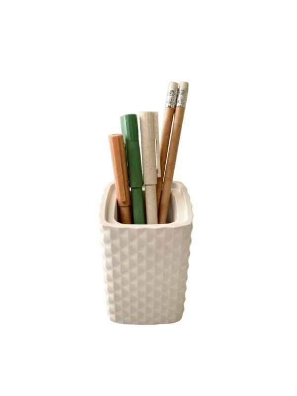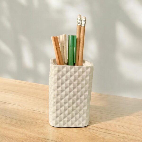 כוס לכלי כתיבה מרובעת עם טקסטורת מעויינים מבטון