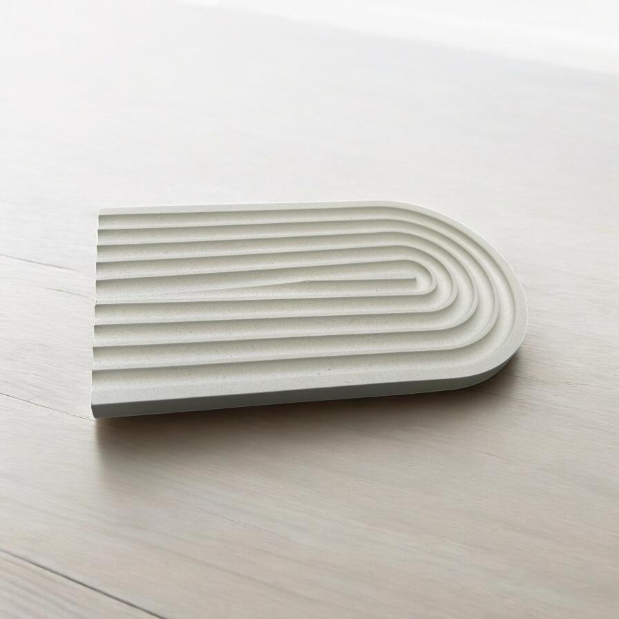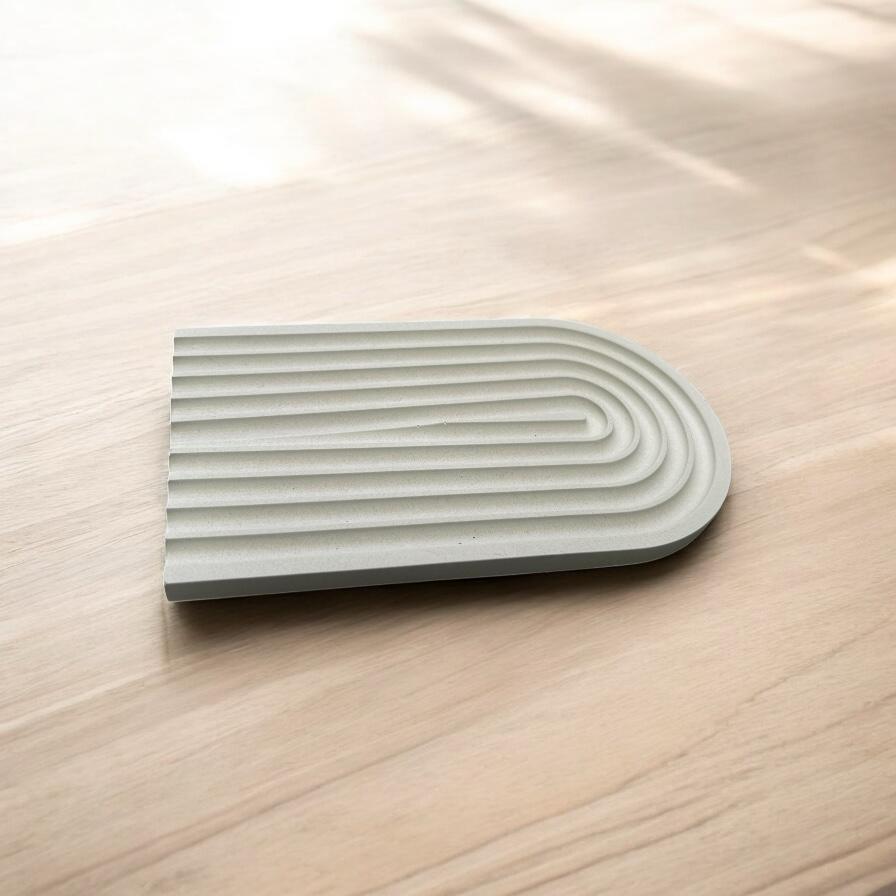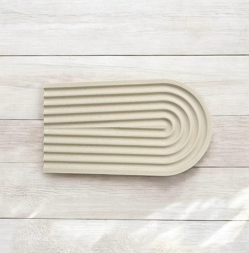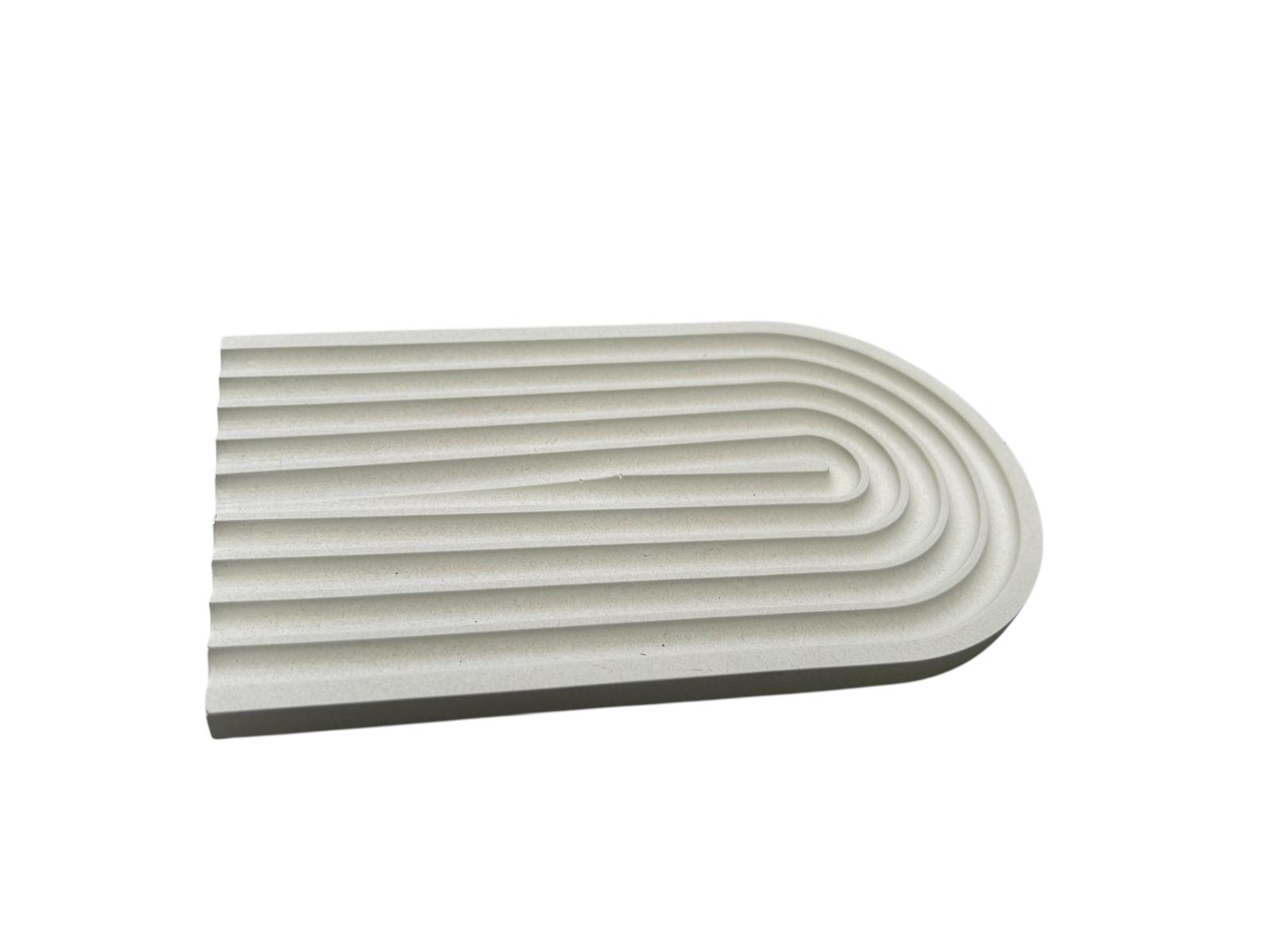 מגש פסים חצי אליפסה לבן-  מיועד לחפצי נוי (עציצים, נרות, אגרטל וכו')