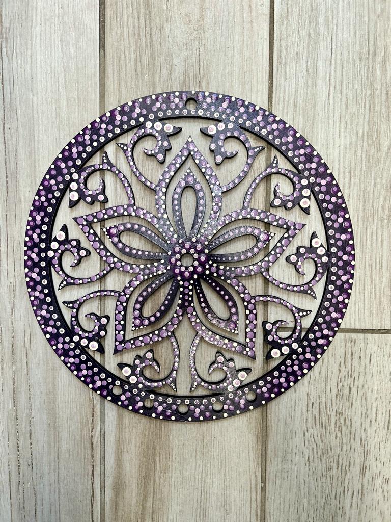 מנדלה נקודות על משרביה מעץ מצויירת באקריל