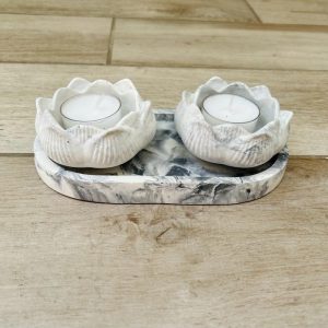 סט 3 אגרטלי מיני בגדלים שונים, בצבע שחור ומגש