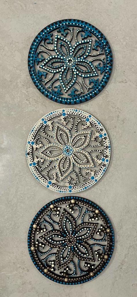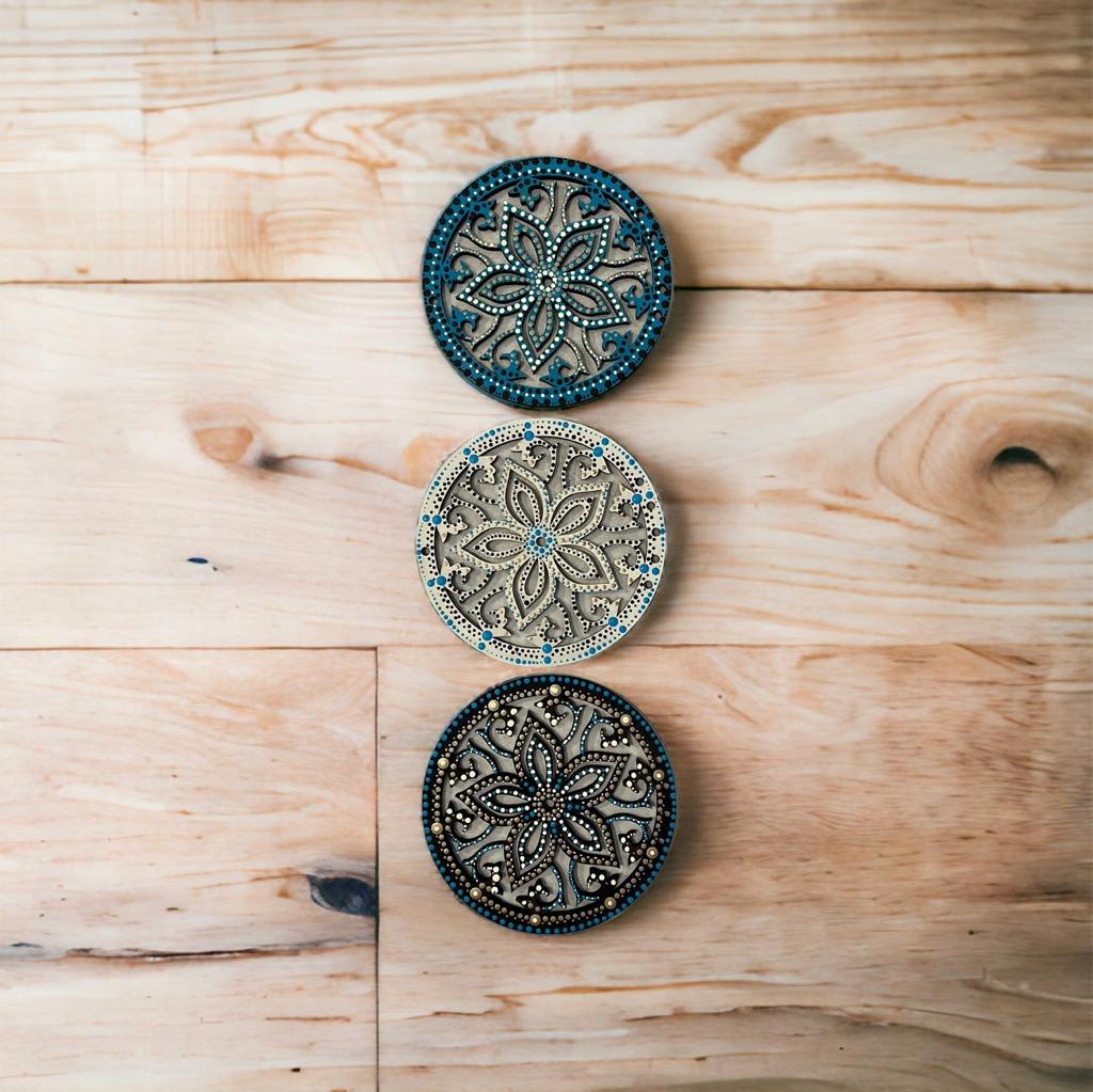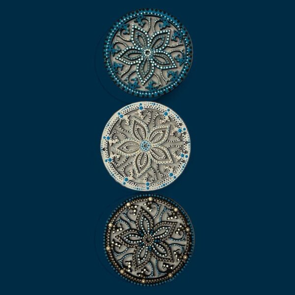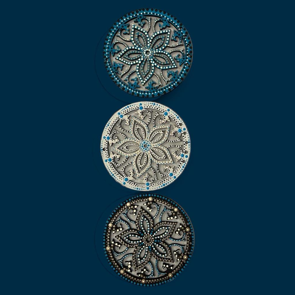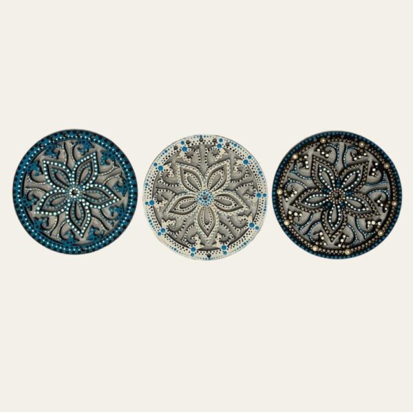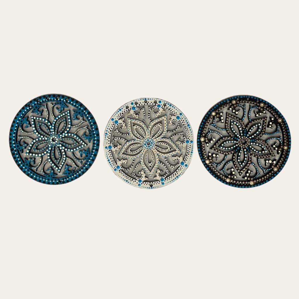 סט 3 משרביות מנדלה בגווני שחור, כחול, שמנת, אופוואייט