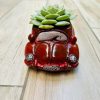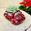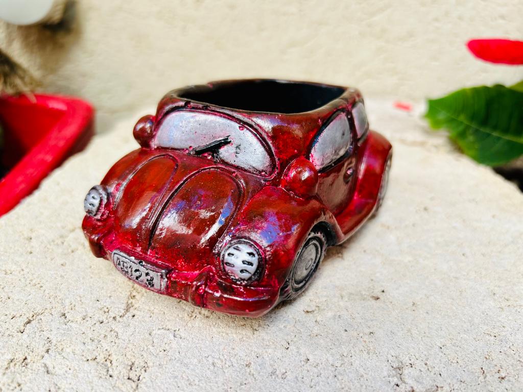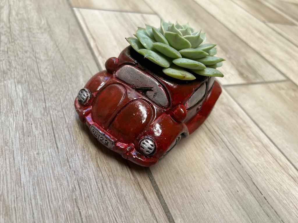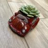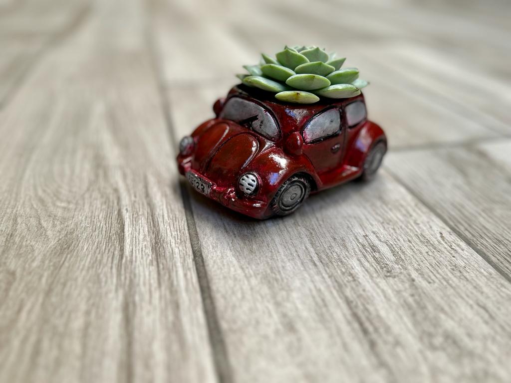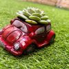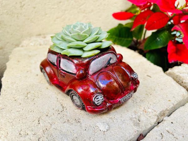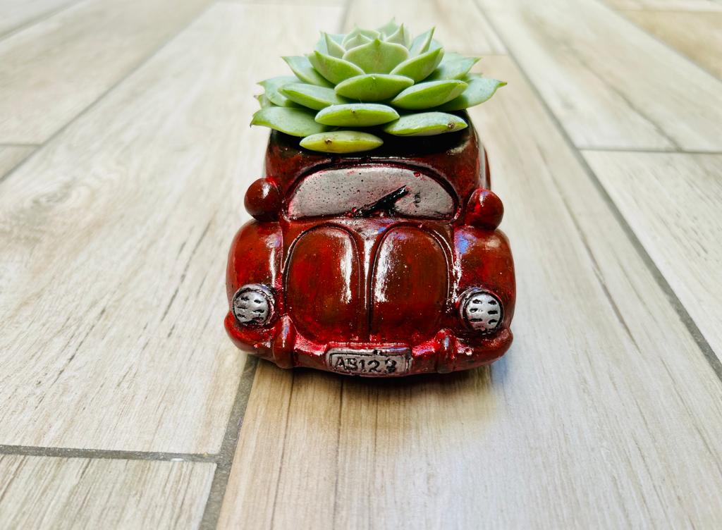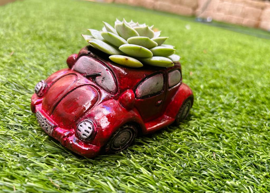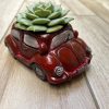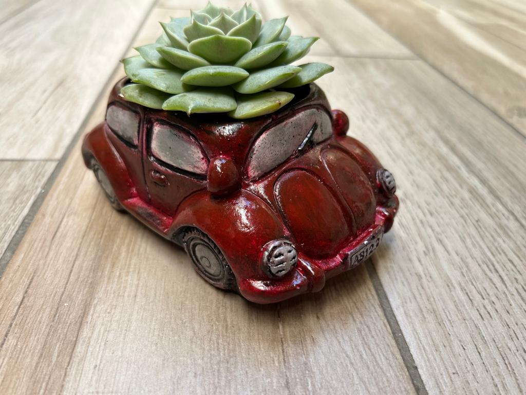 עציץ מבטון בצורת מכונית “חיפושית” לסוקולנטים, בצבע אדום