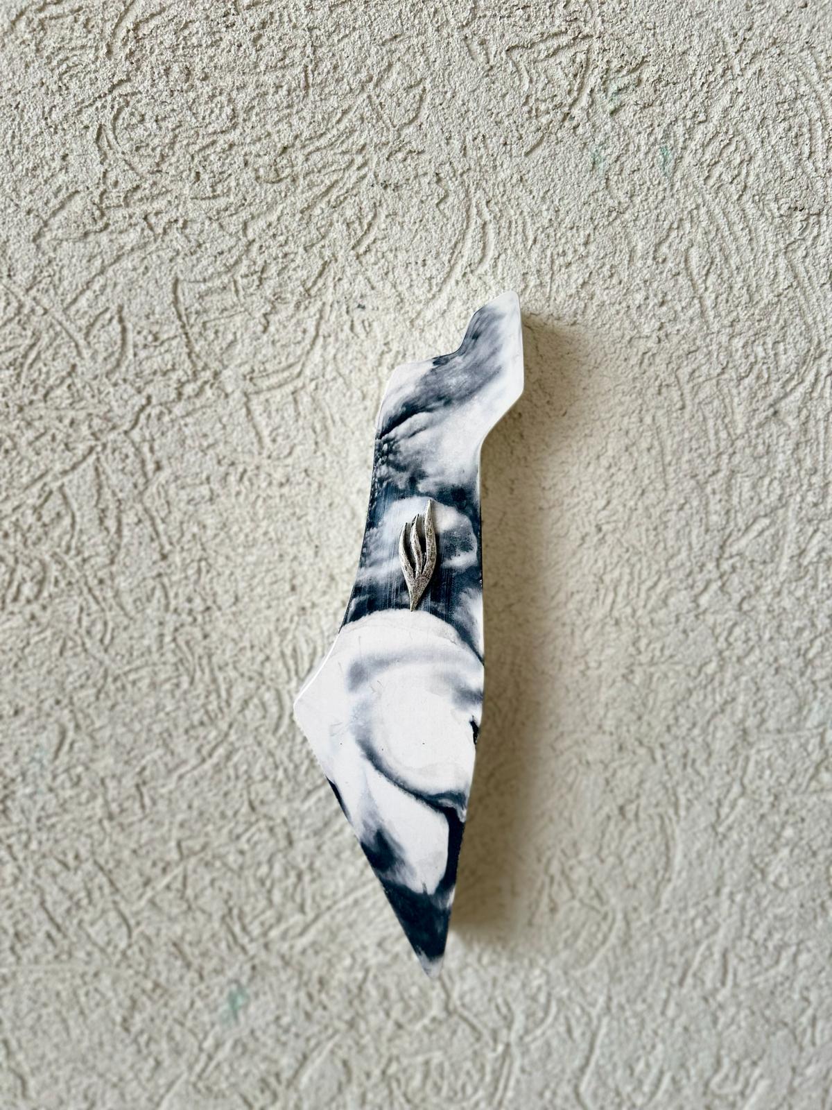 בית מזוזה מעוצב בצורת "ארץ ישראל" – דמוי שיש לבן שחור