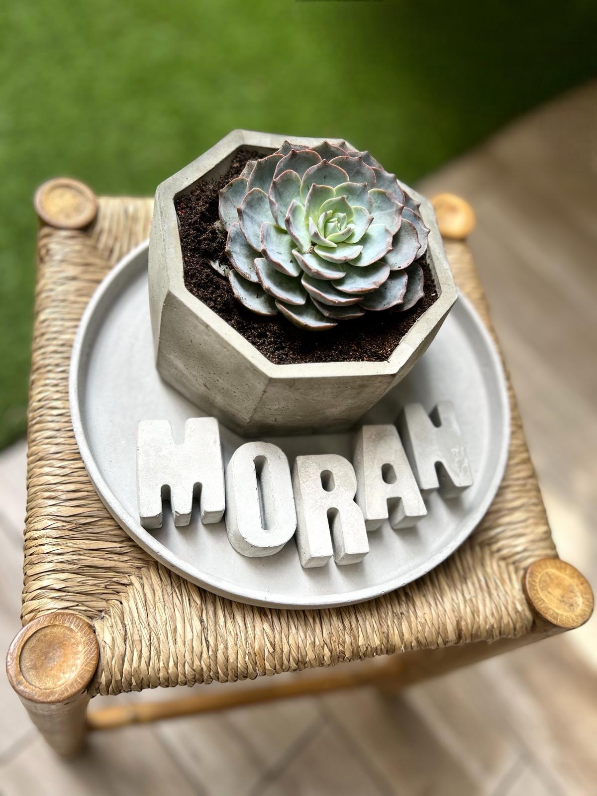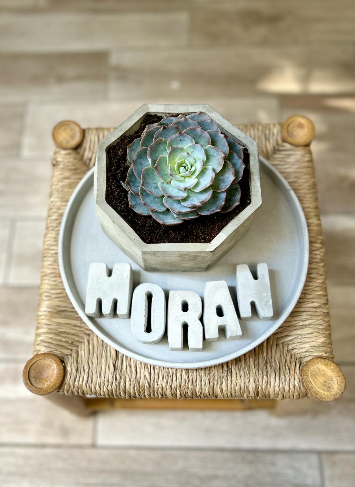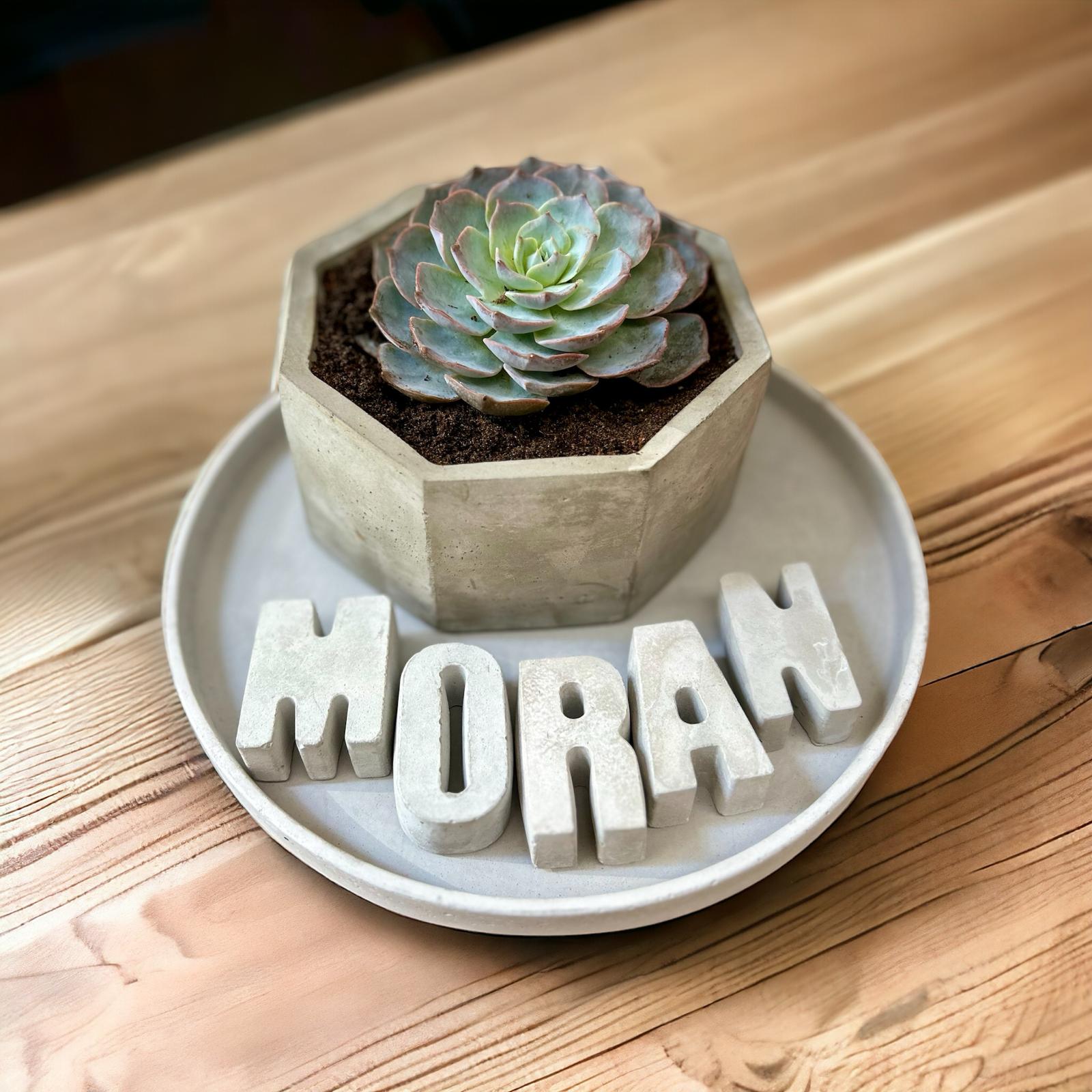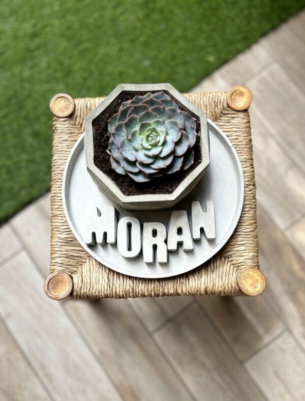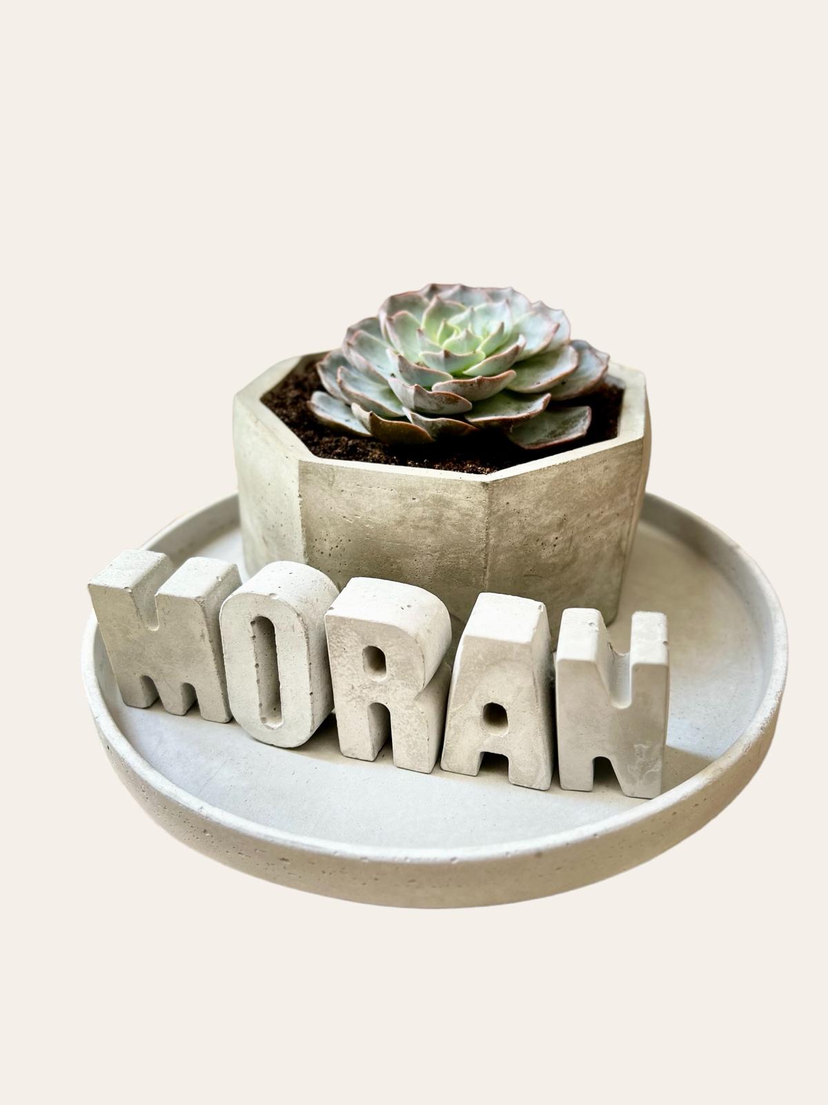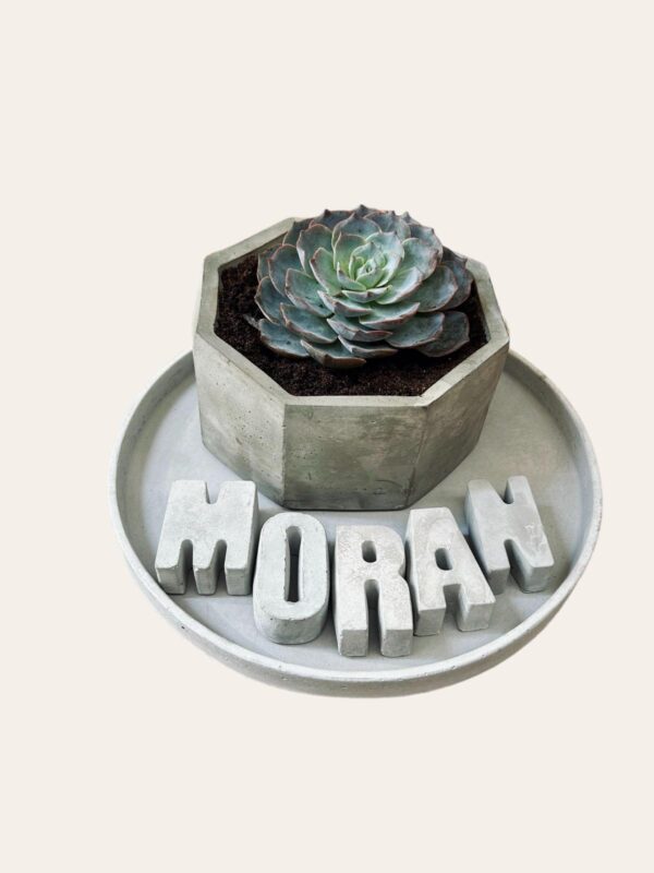 המארז כולל מגש נוי, עציץ עם סוקולנט ושם באנגלית