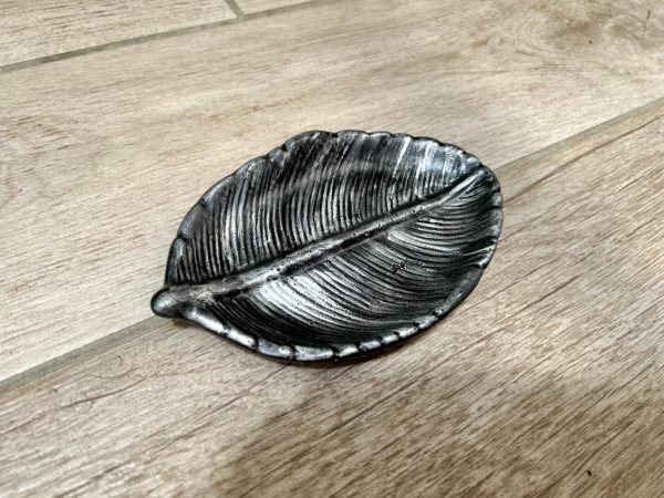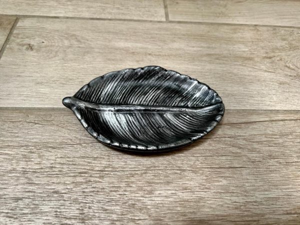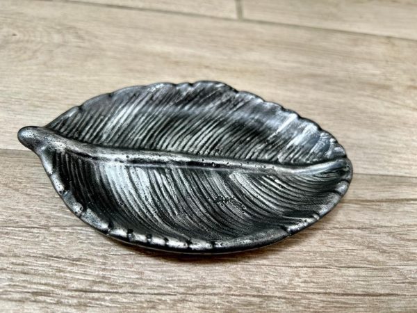 קערית נוי בצורת עלה בצבע שחור- כסף מטאלי לתכשיטים, מפתחות ועוד..